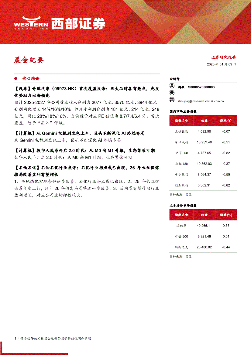 西部证券-晨会纪要-260109