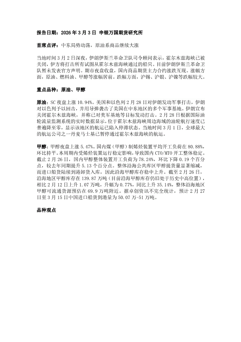 申银万国期货-早间评论-260303