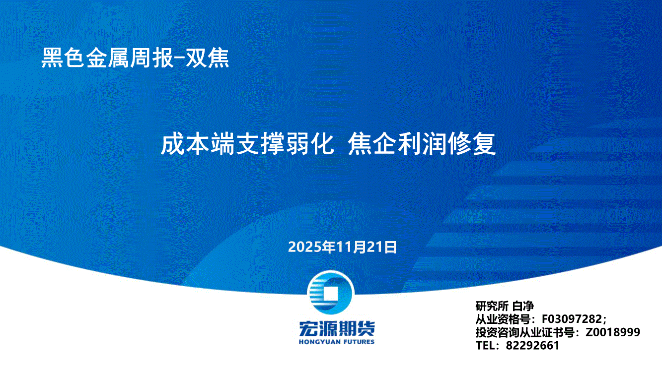 宏源期货-黑色金属周报~双焦:成本端支撑弱化,焦企利润修复-251121