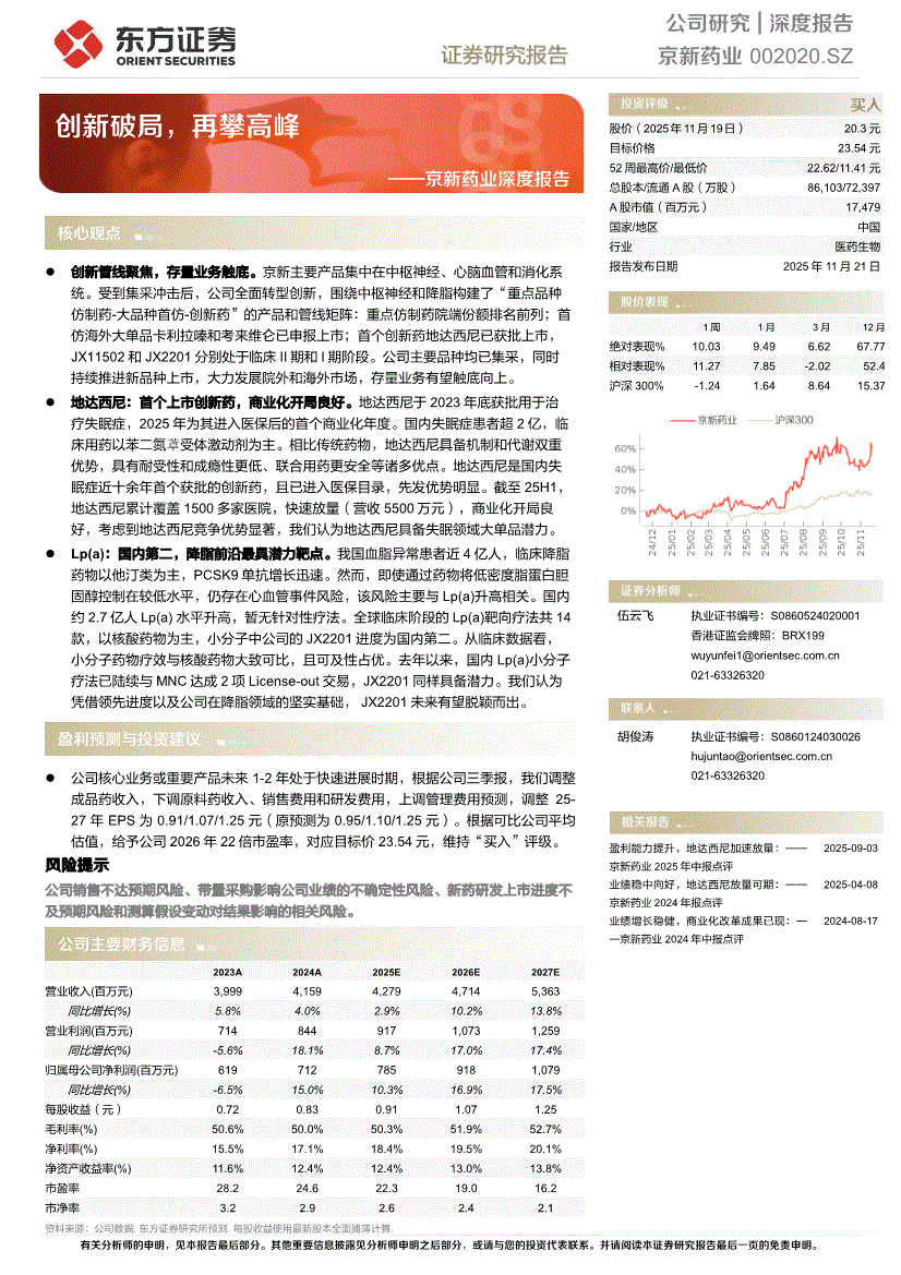京新药业:东方证券-京新药业-002020-深度报告:创新破局,再攀高峰-251121