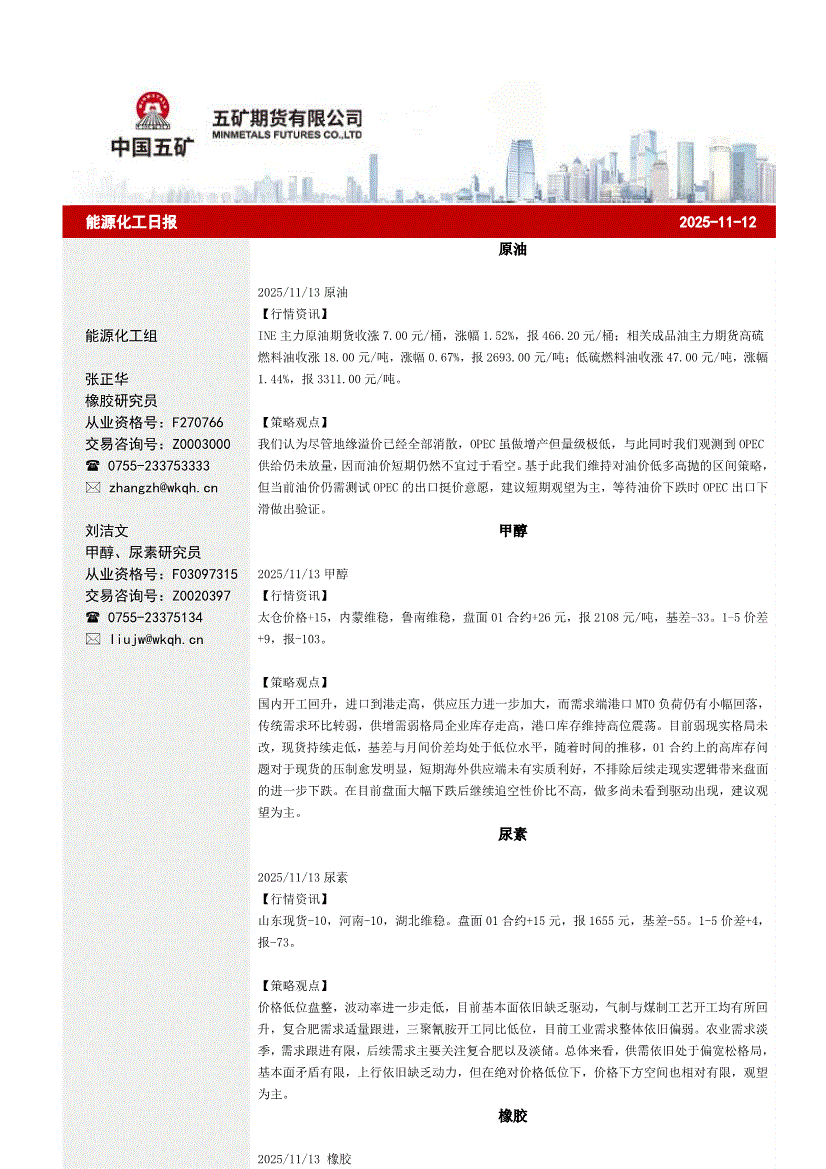 五矿期货-尿素周报:利好兑现后震荡筑底-251115