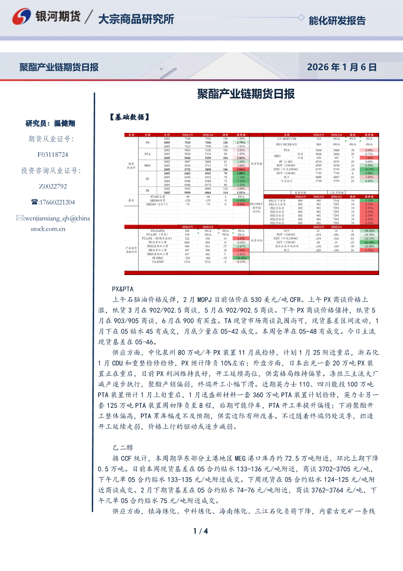 银河期货-聚酯产业链期货日报-260106