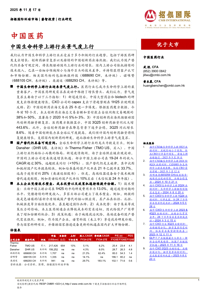 医药行业:招银国际-中国医药行业:中国生命科学上游行业景气度上行-251117