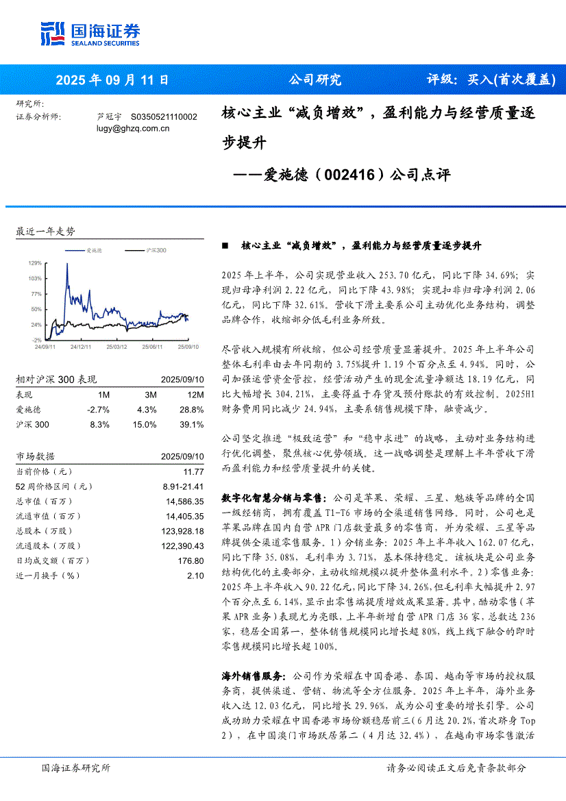 爱施德:国海证券-爱施德-002416-公司点评:核心主业“减负增效”,盈利能力与经营质量逐步提升-250911