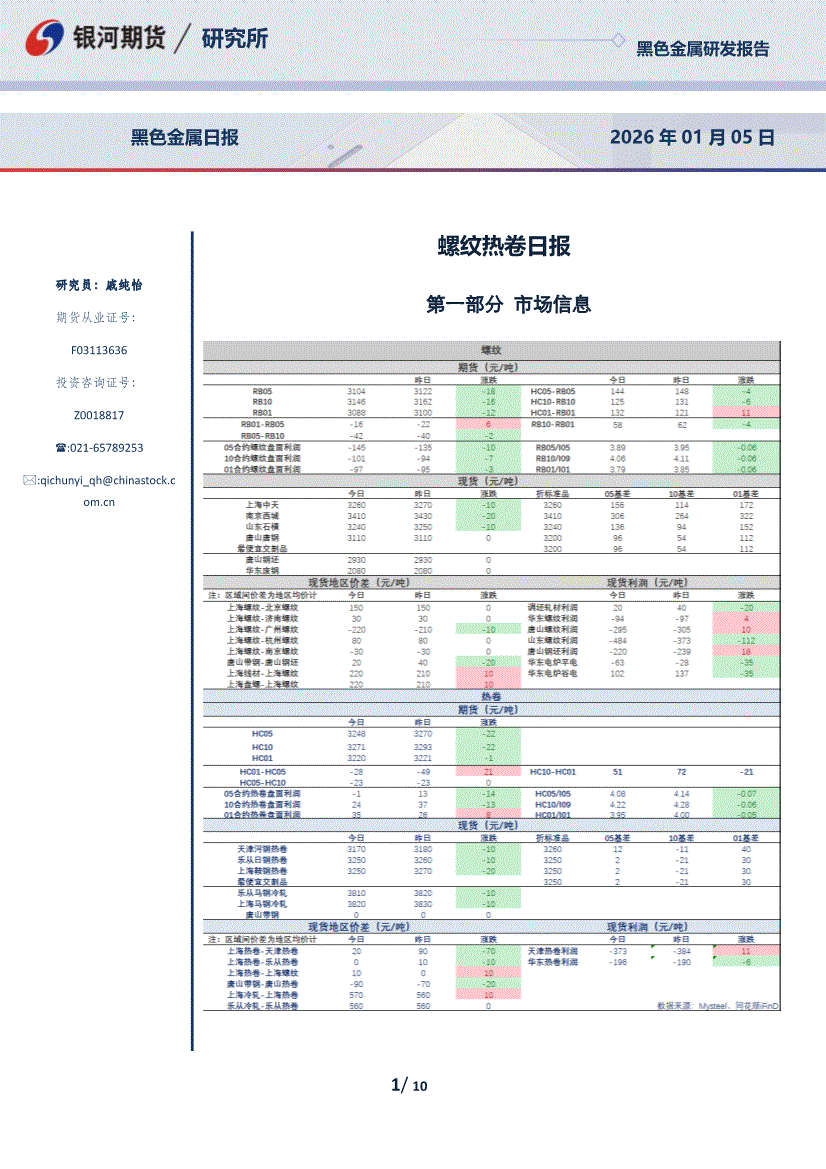 银河期货-螺纹热卷日报-260105