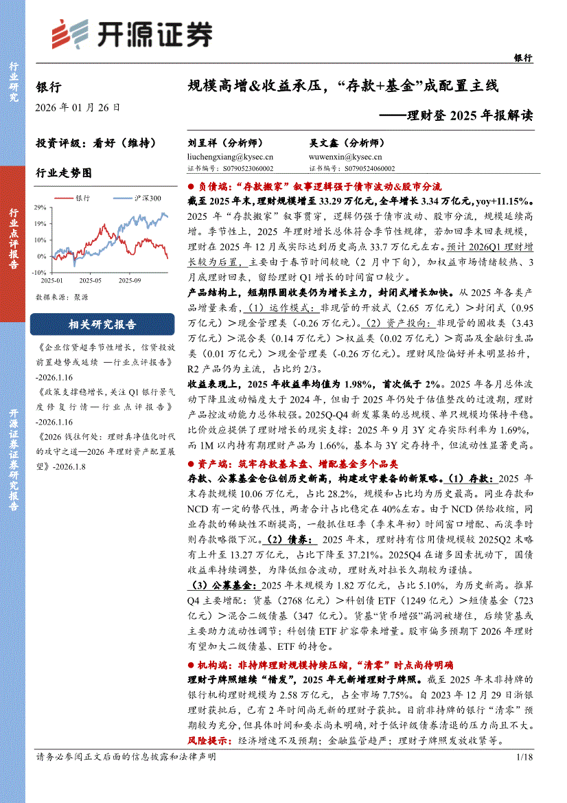银行业:开源证券-银行业理财登2025年报解读:规模高增&收益承压,“存款+基金”成配置主线-260126