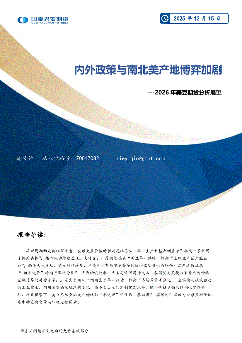 国泰君安期货-2026年美豆期货分析展望:内外政策与南北美产地博弈加剧-251215