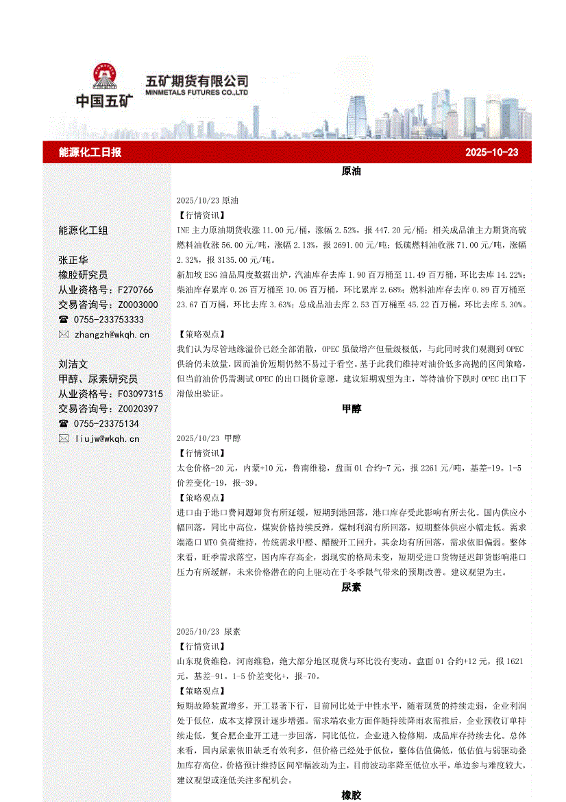 五矿期货-橡胶周报:橡胶有企稳反弹迹象-251018
