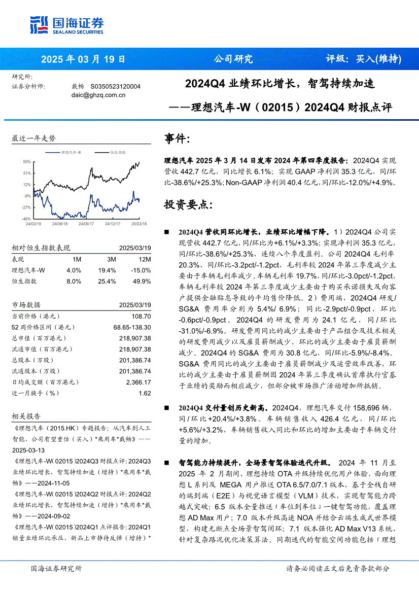 理想汽车~W:国海证券-理想汽车~W-2015.HK-2024Q4财报点评:2024Q4业绩环比增长,智驾持续加速-250319