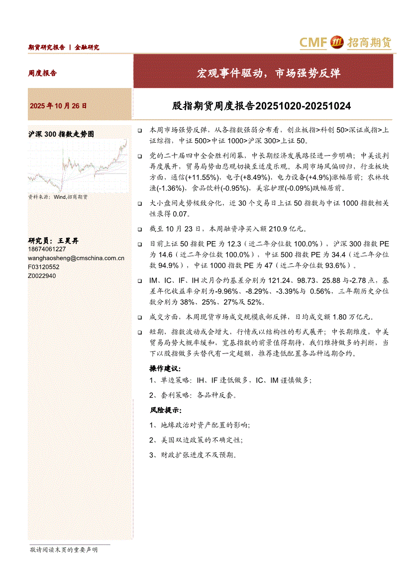 招商期货-股指期货周度报告:宏观事件驱动,市场强势反弹-251026