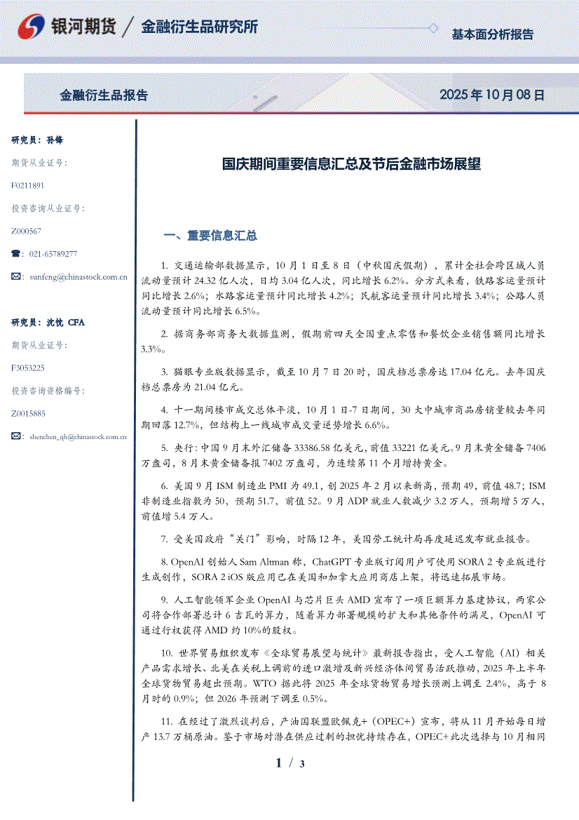 银河期货-国庆期间重要信息汇总及节后金融市场展望-251008