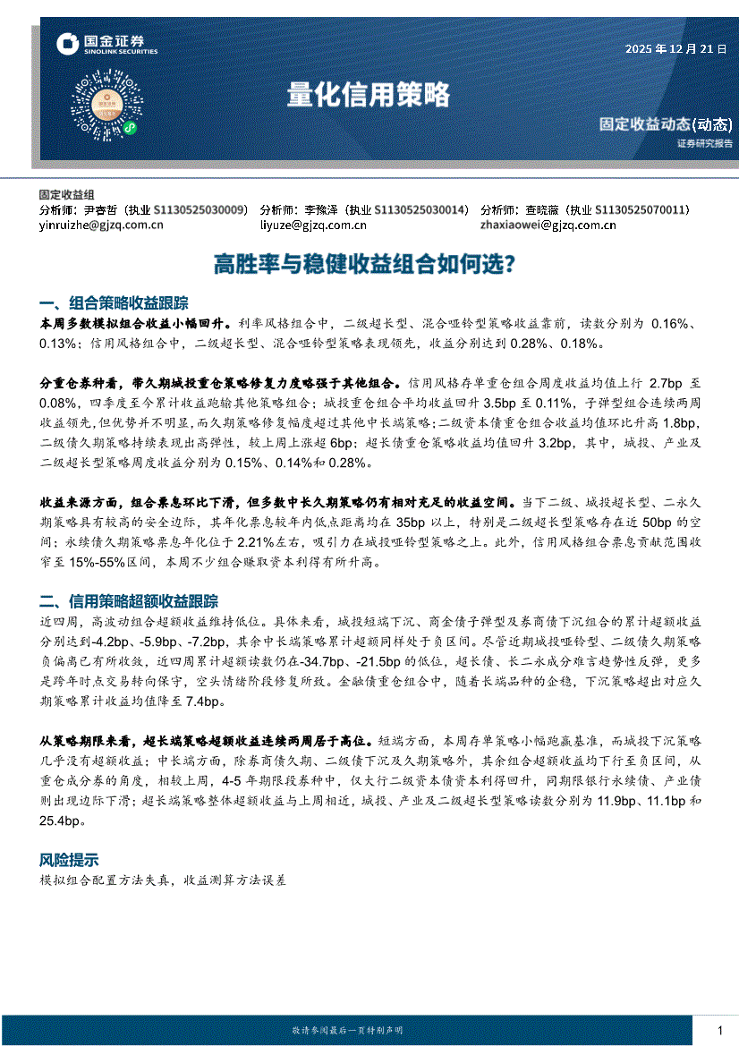 国金证券-量化信用策略:高胜率与稳健收益组合如何选?-251221