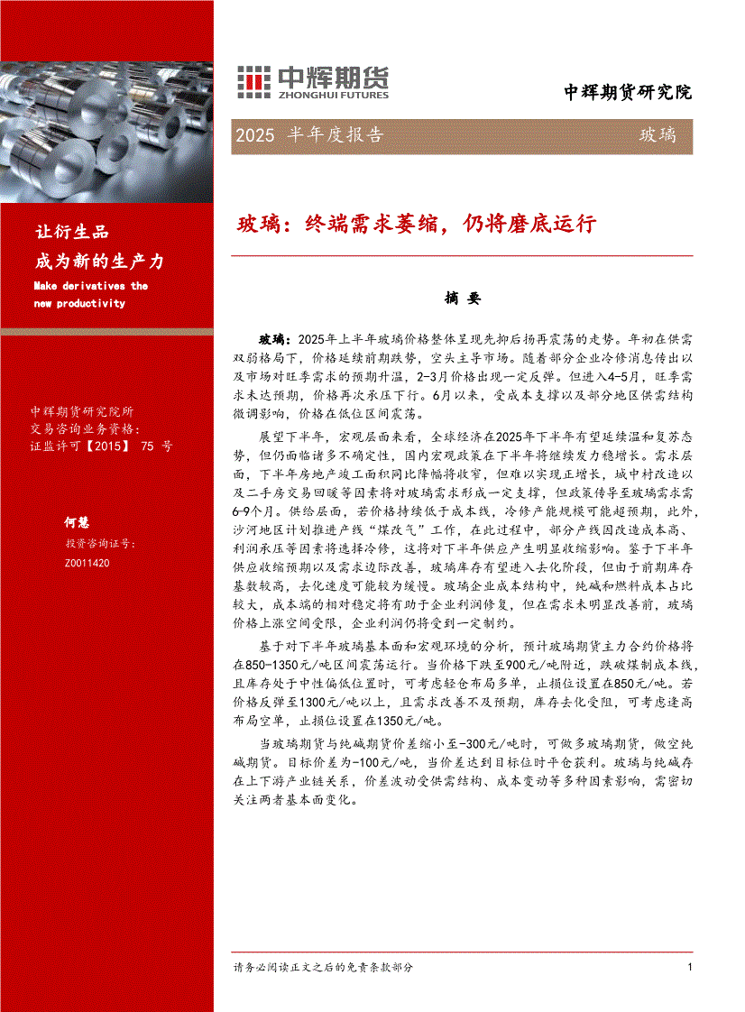 中辉期货-玻璃2025半年度报告:终端需求萎缩,仍将磨底运行-260316