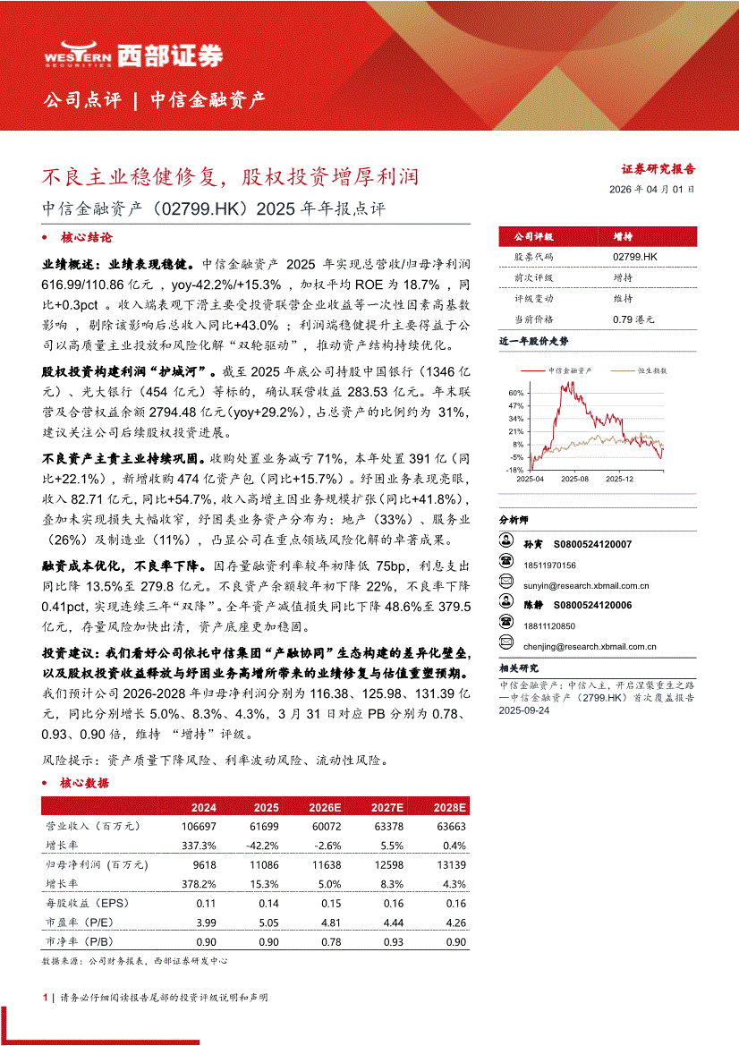 中信金融资产:西部证券-中信金融资产-2799.HK-2025年年报点评:不良主业稳健修复,股权投资增厚利润-260401