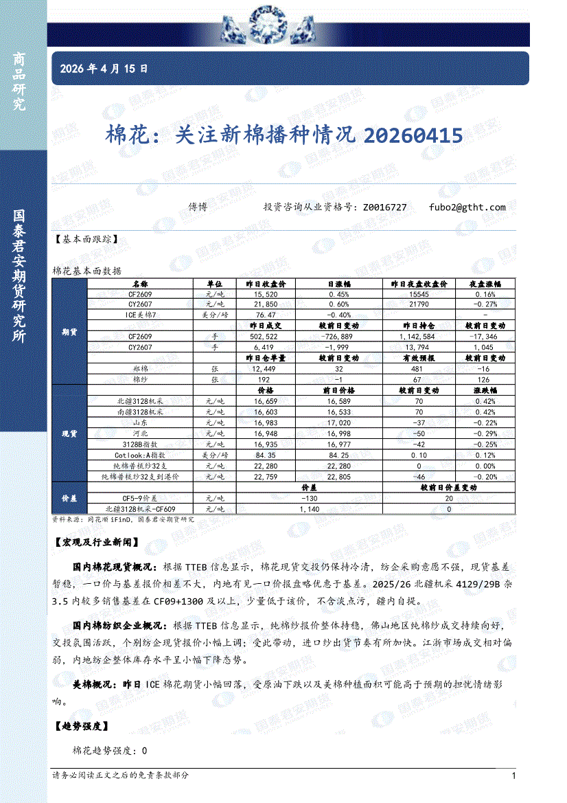 国泰君安期货-棉花:关注新棉播种情况-260415