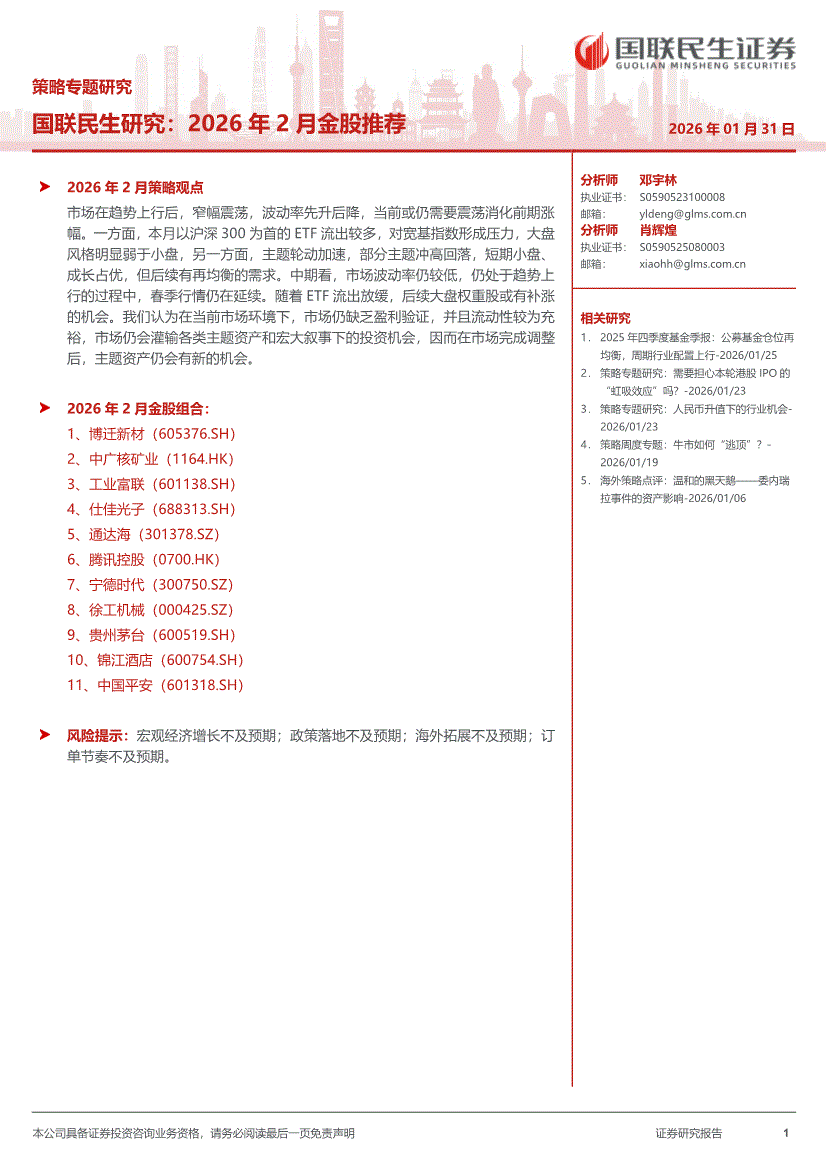 国联民生证券-国联民生研究:2026年2月金股推荐-260131