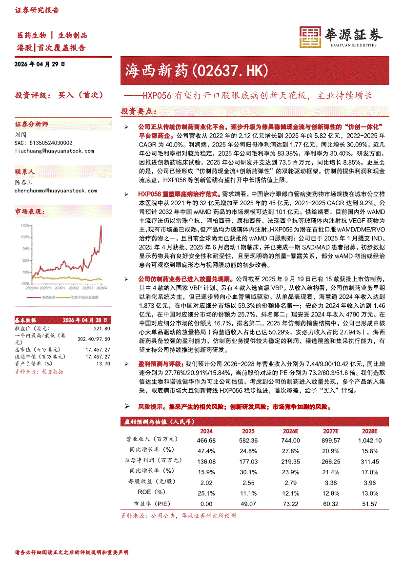 海西新药:华源证券-海西新药-2637.HK-HXP056有望打开口服眼底病创新天花板,主业持续增长-260429