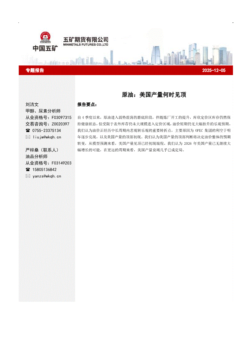 五矿期货-原油专题报告:美国产量何时见顶-251205