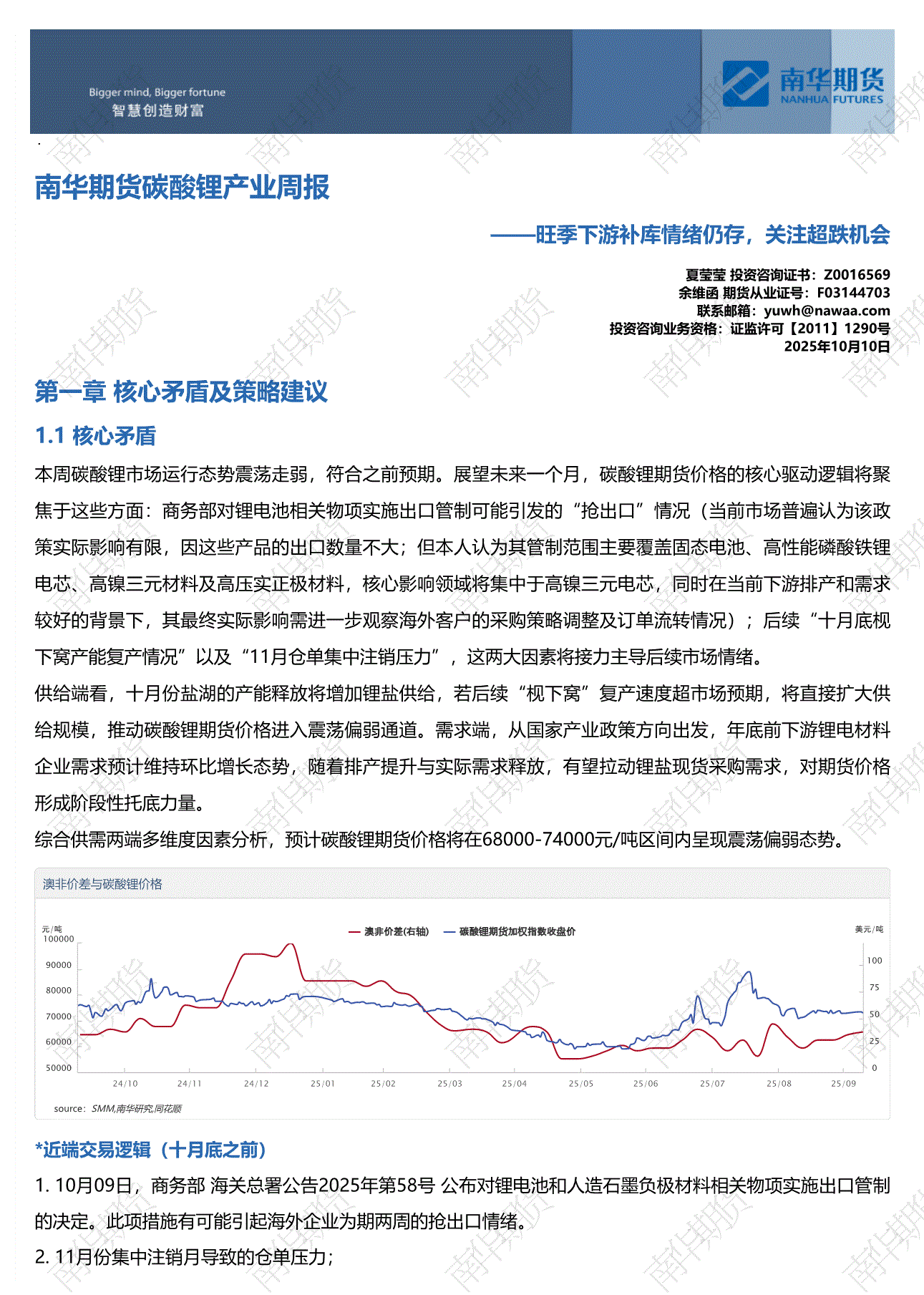 南华期货-碳酸锂产业周报:旺季下游补库情绪仍存,关注超跌机会-251010