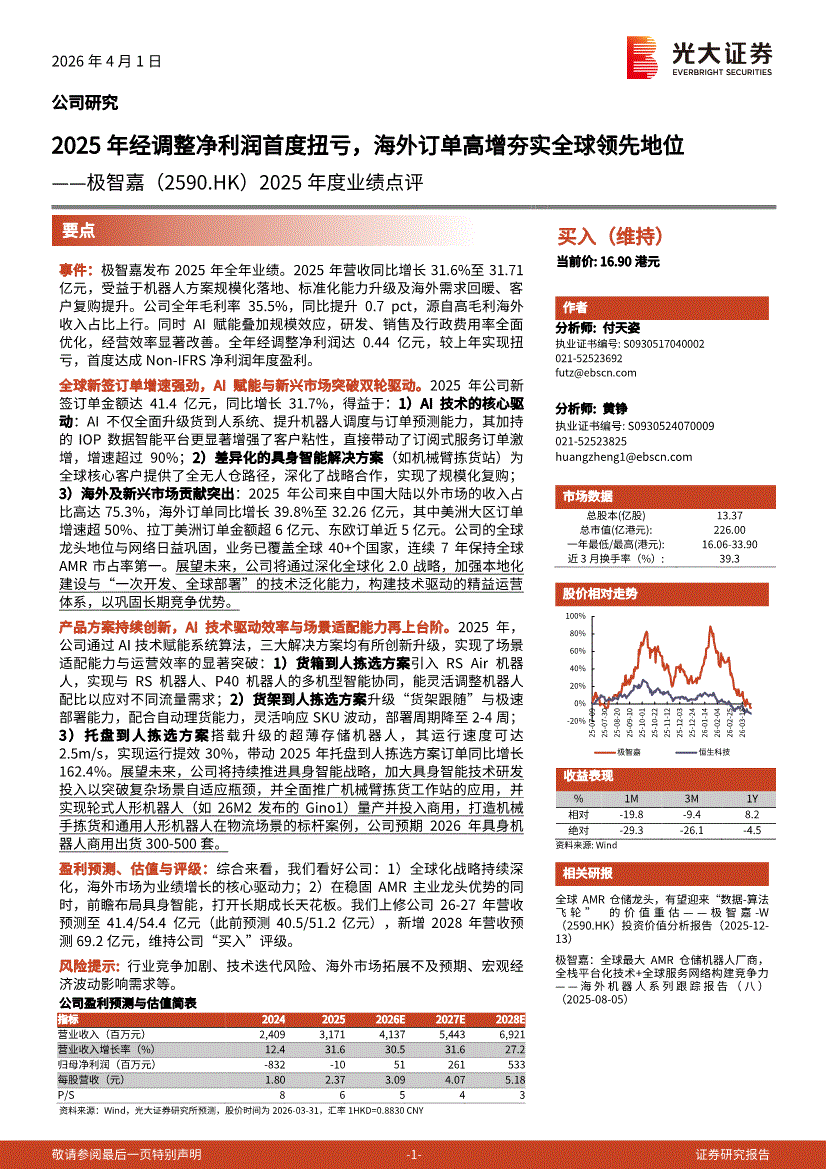 极智嘉:光大证券-极智嘉-2590.HK-2025年度业绩点评:2025年经调整净利润首度扭亏,海外订单高增夯实全球领先地位-260401