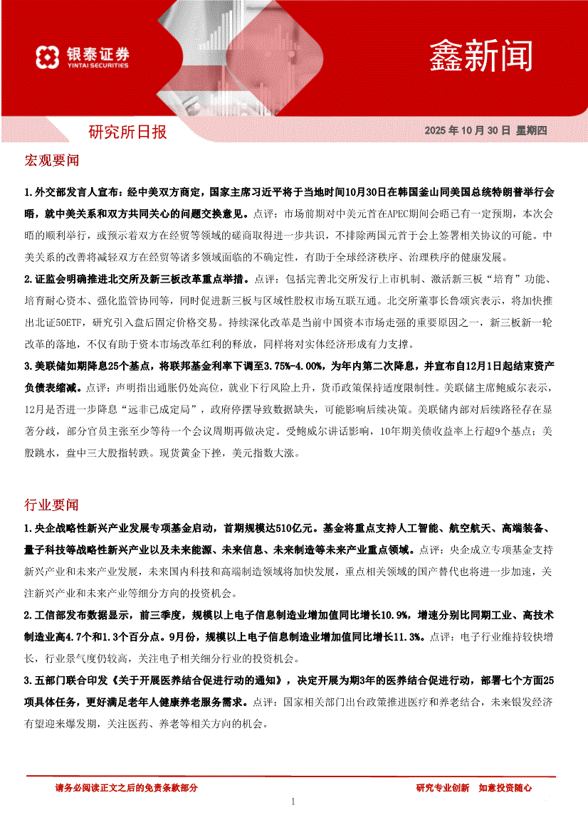 大同证券-三大指数集体回落,中美元首会晤结束-251031