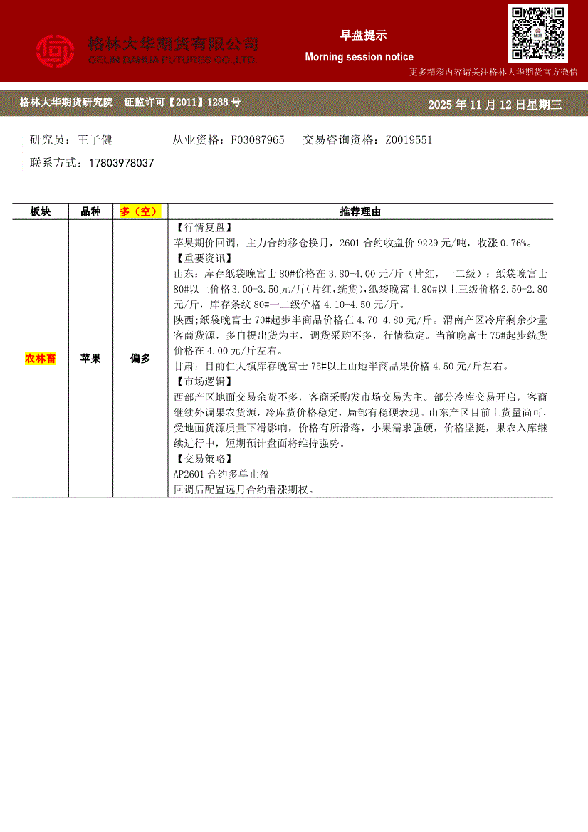 格林大华期货-期货早班车:棉花、苹果、原木-251029