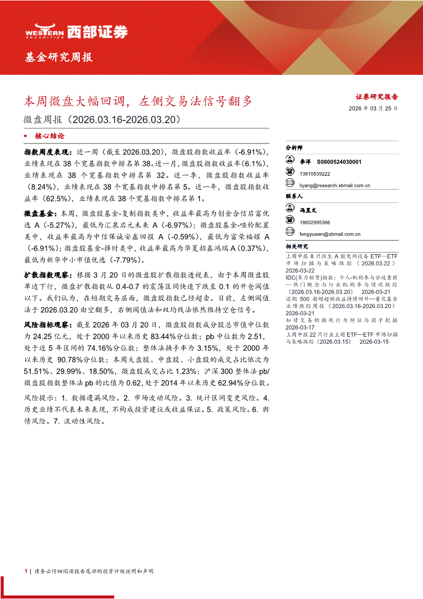 西部证券-微盘周报:本周微盘大幅回调,左侧交易法信号翻多-260325