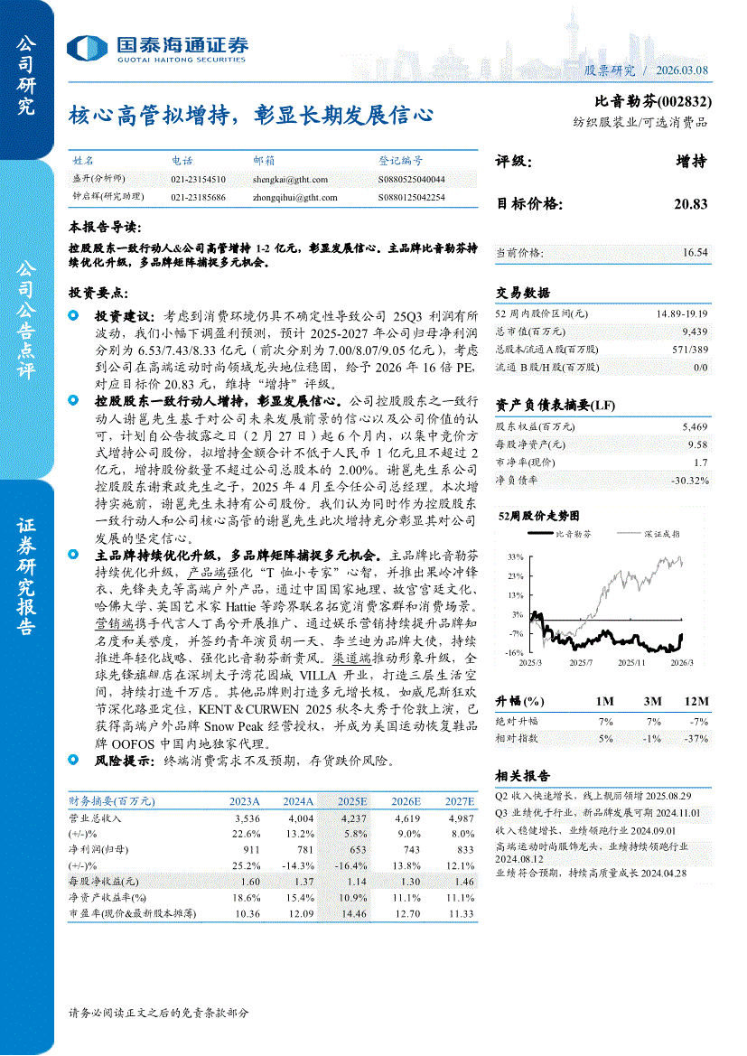 比音勒芬:国泰海通证券-比音勒芬-002832-核心高管拟增持,彰显长期发展信心-260308