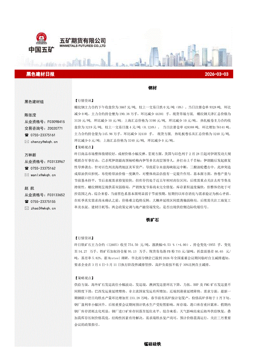 五矿期货-黑色建材日报-260303
