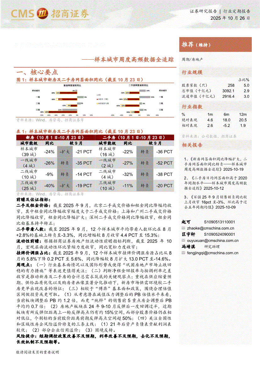 房地产行业:招商证券-房地产行业:9月推盘未售去化周期较8月上升——样本城市周度高频数据全追踪-251026