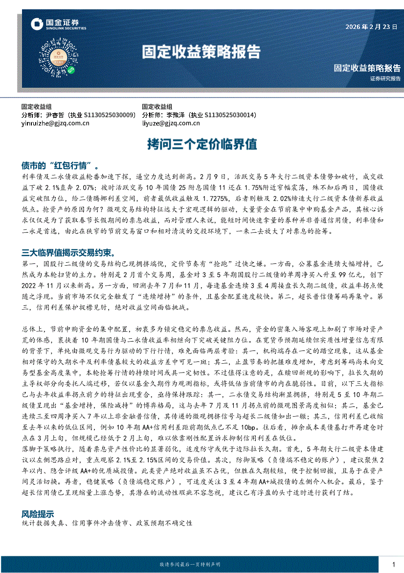 国金证券-固定收益策略报告:拷问三个定价临界值-260223