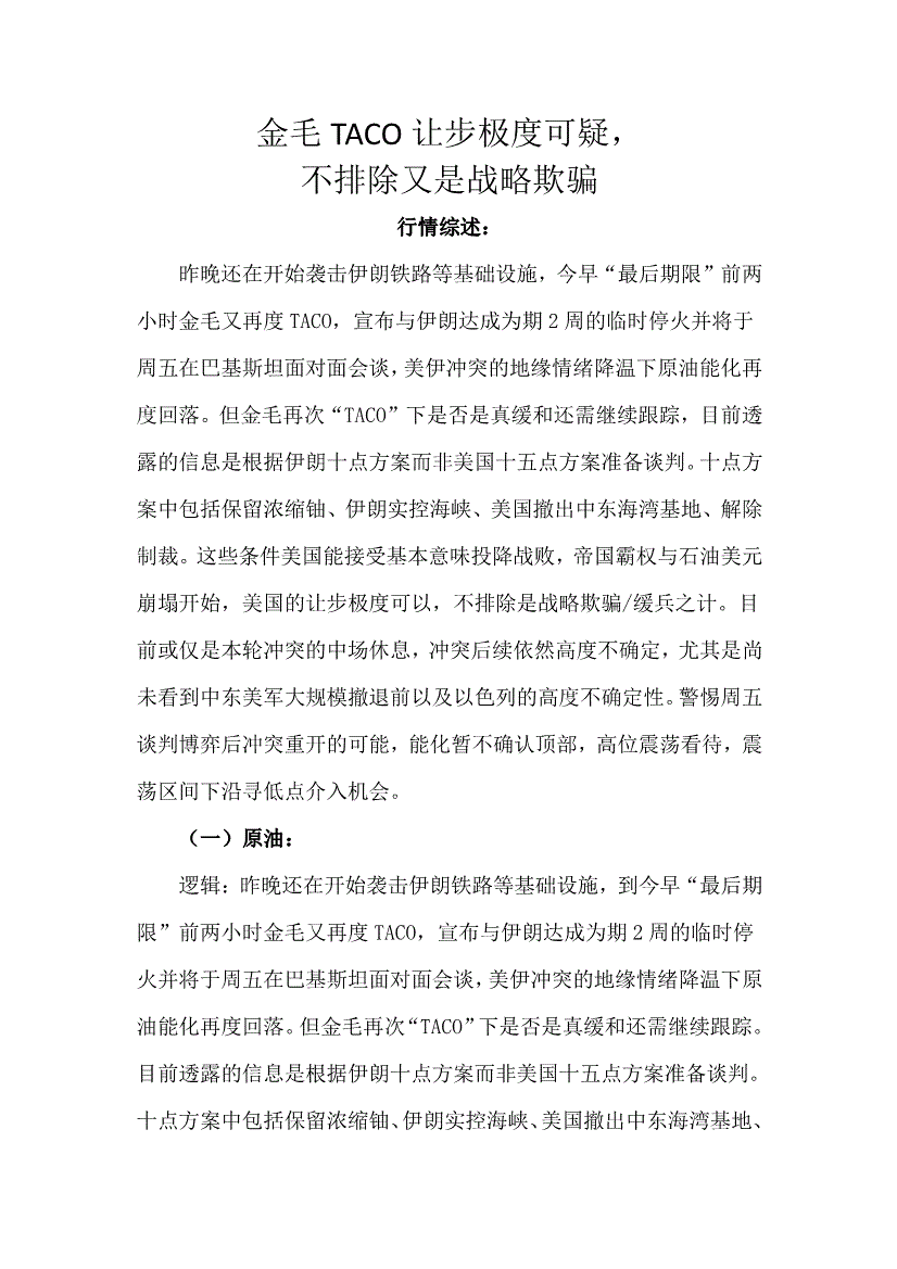 天富期货-金毛TACO让步极度可疑,不排除又是战略欺骗-260408