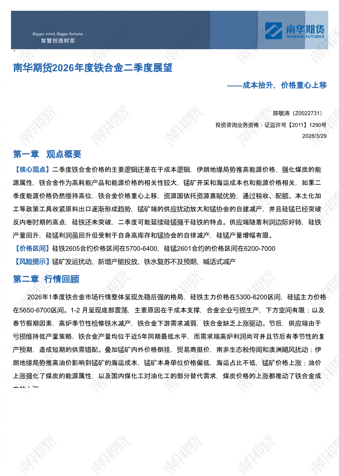南华期货-2026年度铁合金二季度展望:成本抬升,价格重心上移-260329
