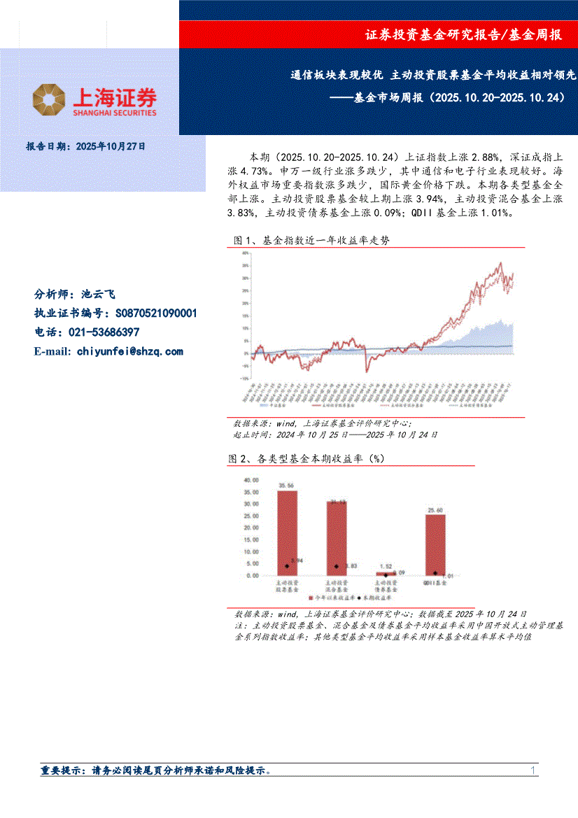 上海证券-基金市场周报:通信板块表现较优,主动投资股票基金平均收益相对领先-251027