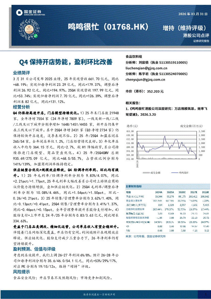 鸣鸣很忙:国金证券-鸣鸣很忙-1768.HK-Q4保持开店势能,盈利环比改善-260331