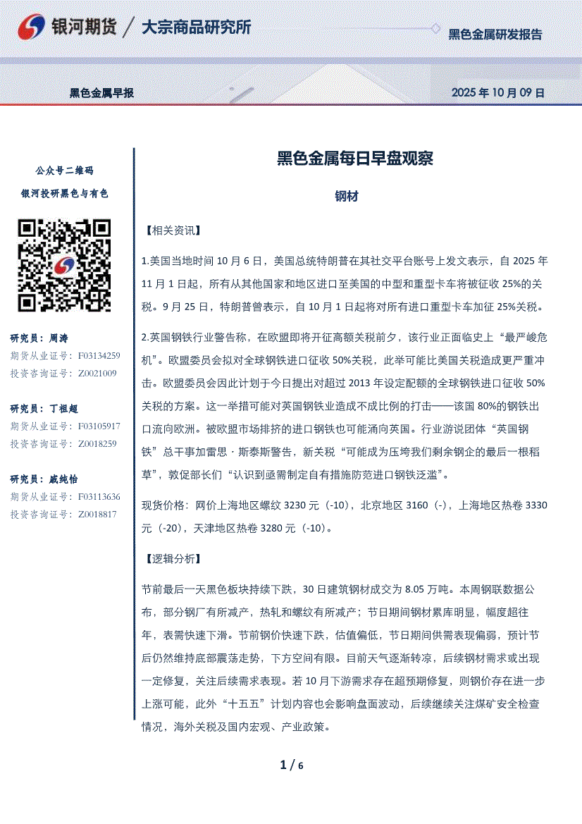 银河期货-黑色金属每日早盘观察-251009