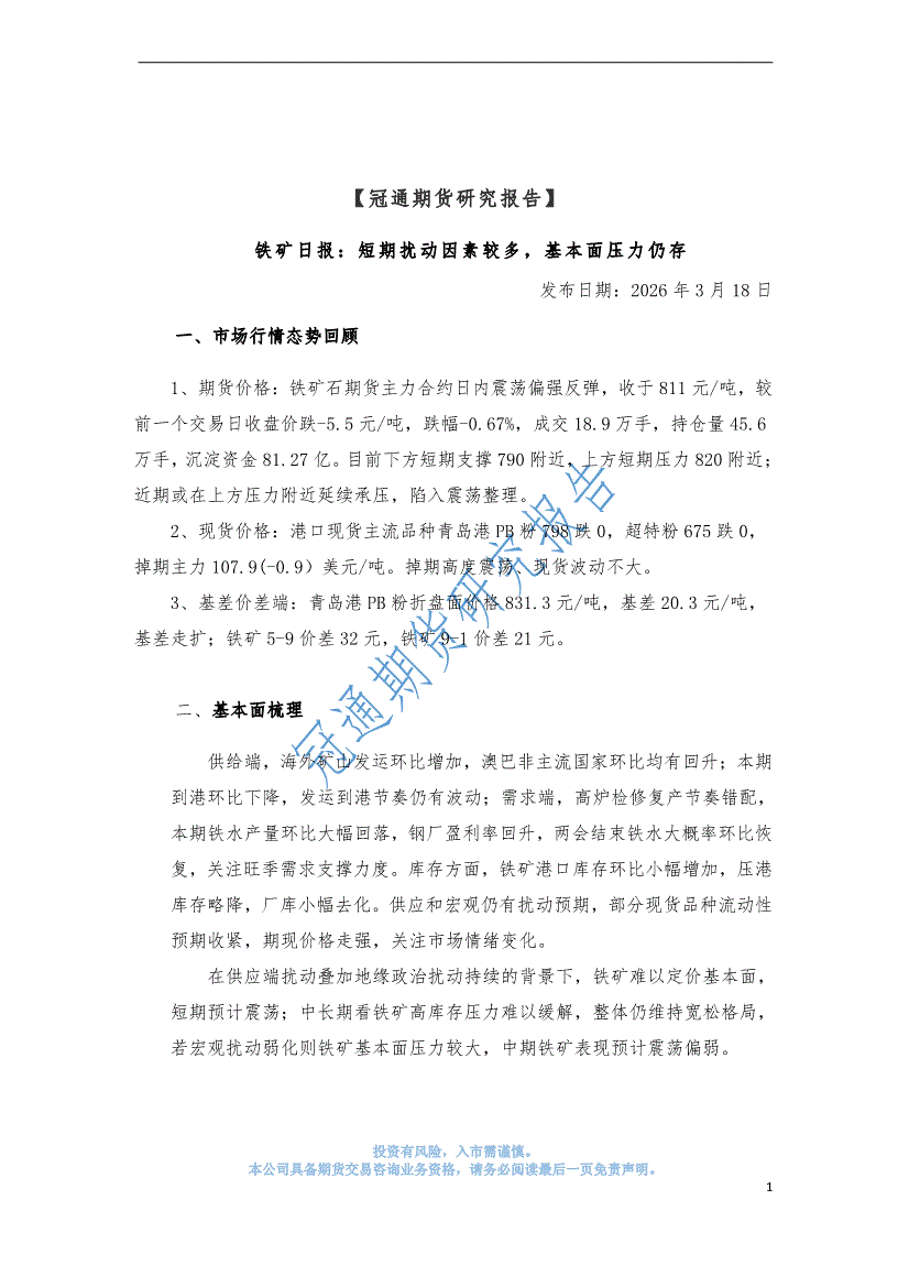 冠通期货-铁矿日报:短期扰动因素较多,基本面压力仍存-260318