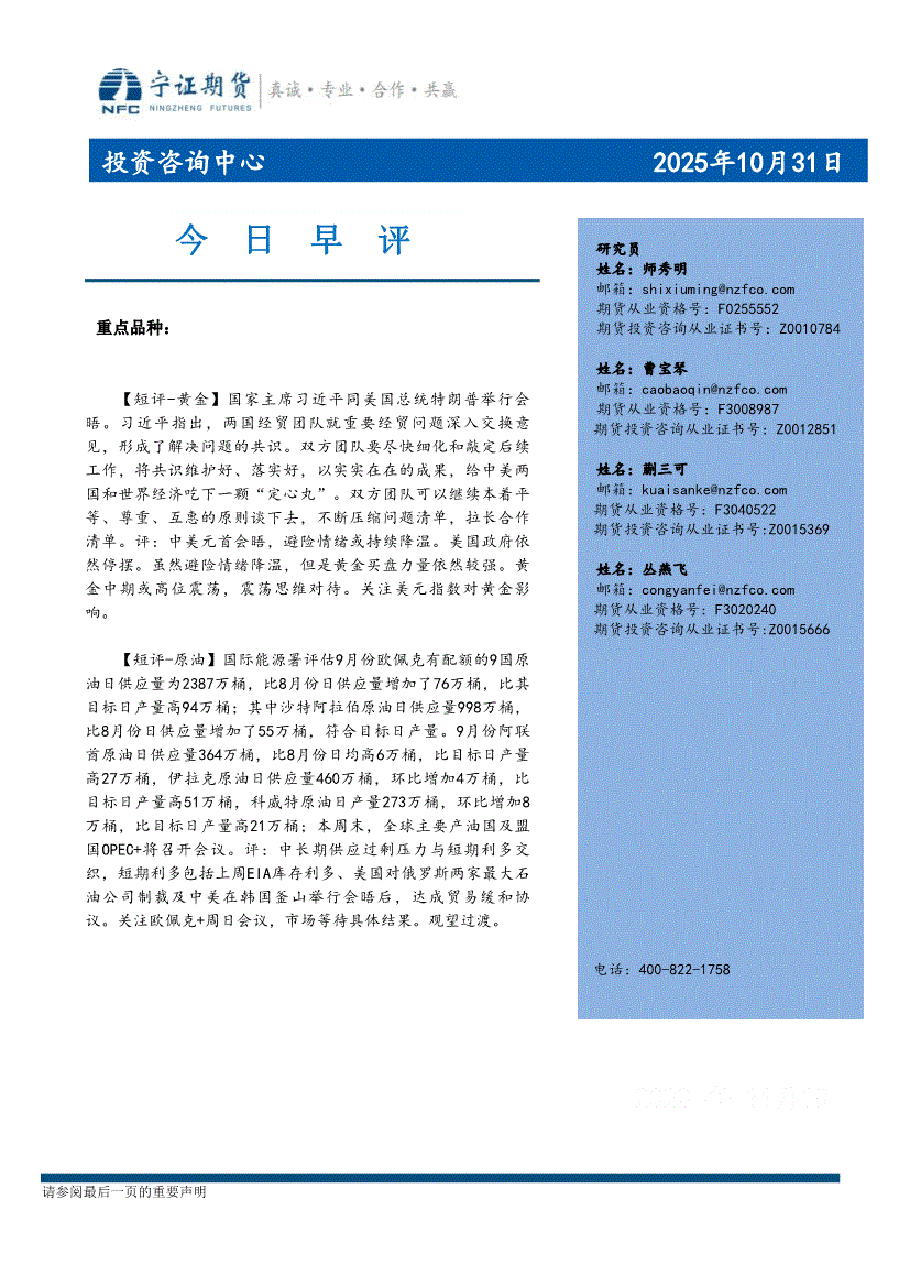 宁证期货-贵金属周度报告:降息充分定价,贵金属震荡属性增加-251027