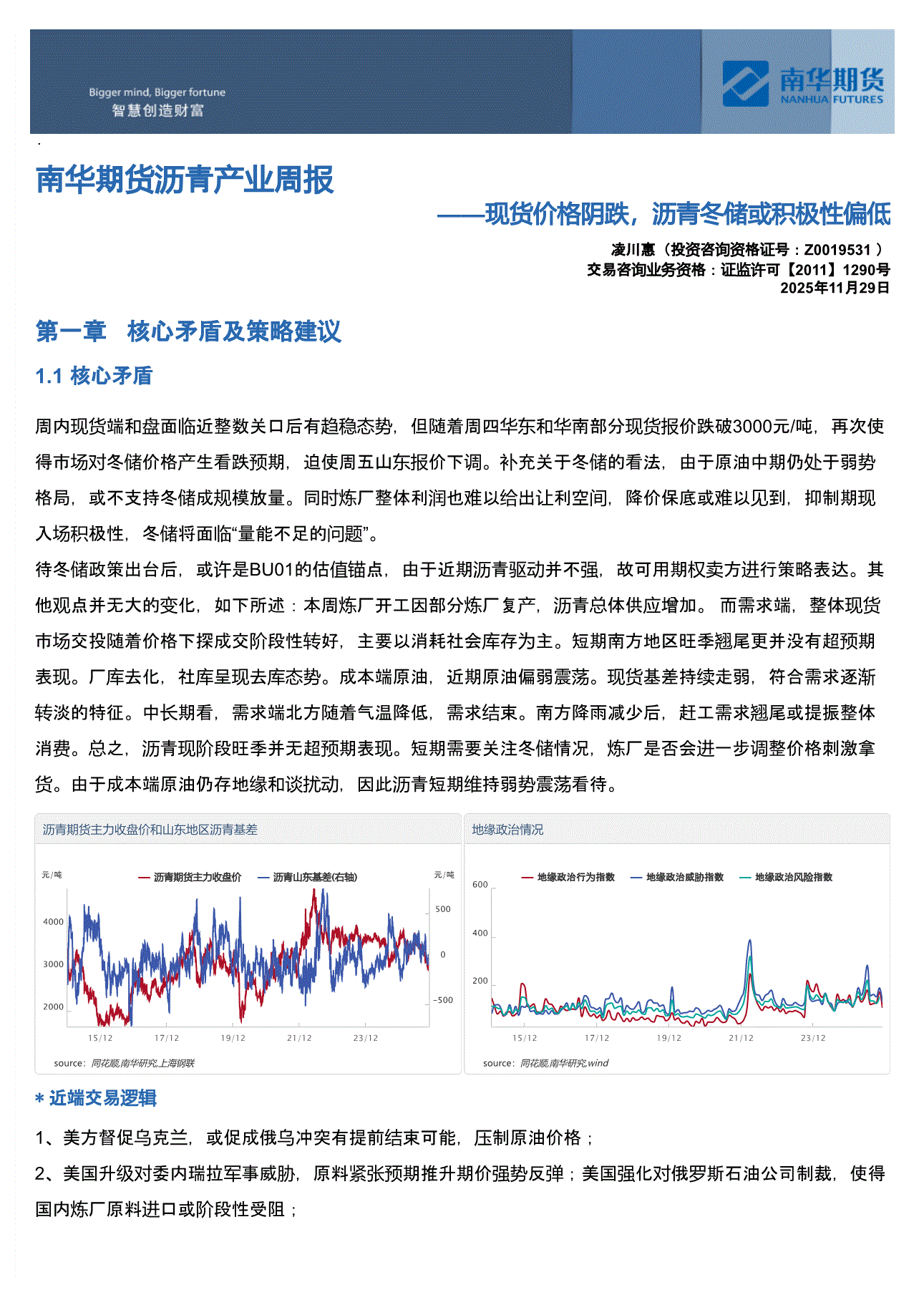 南华期货-沥青产业周报:现货价格阴跌,沥青冬储或积极性偏低-251129