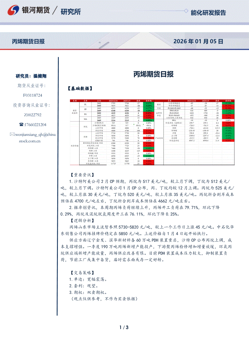 银河期货-丙烯期货日报-260105