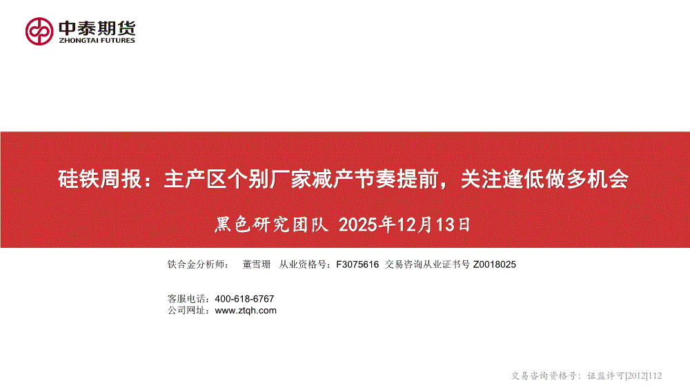 中泰期货-硅铁周报:主产区个别厂家减产节奏提前,关注逢低做多机会-251213