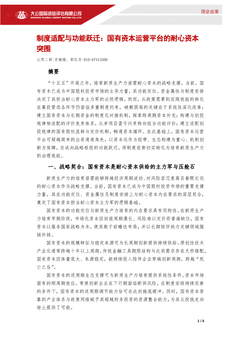 大公国际-制度适配与功能跃迁:国有资本运营平台的耐心资本突围-260415