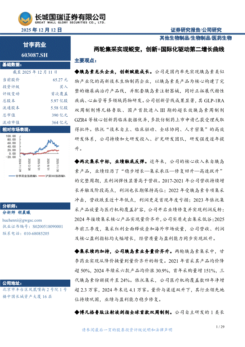 甘李药业:长城国瑞证券-甘李药业-603087-两轮集采实现蜕变,创新+国际化驱动第二增长曲线-251212