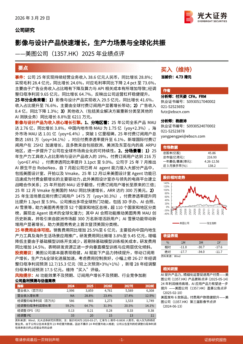 美图公司:光大证券-美图公司-1357.HK-2025年业绩点评:影像与设计产品快速增长,生产力场景与全球化共振-260329