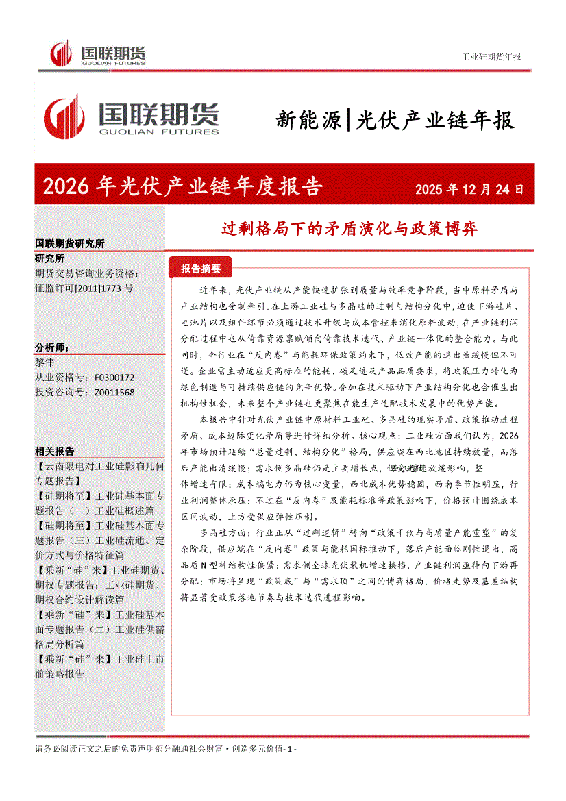 国联期货-2026年光伏产业链年度报告:过剩格局下的矛盾演化与政策博弈-251224