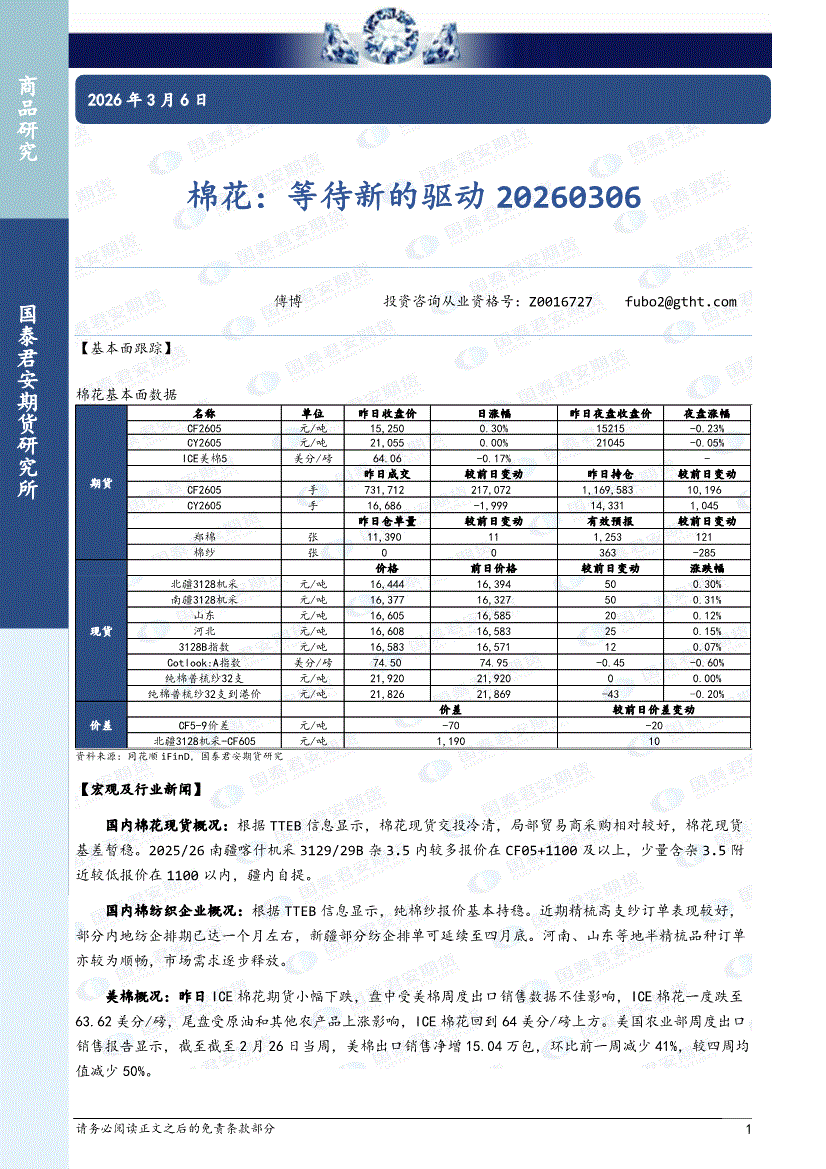 国泰君安期货-棉花:等待新的驱动-260306