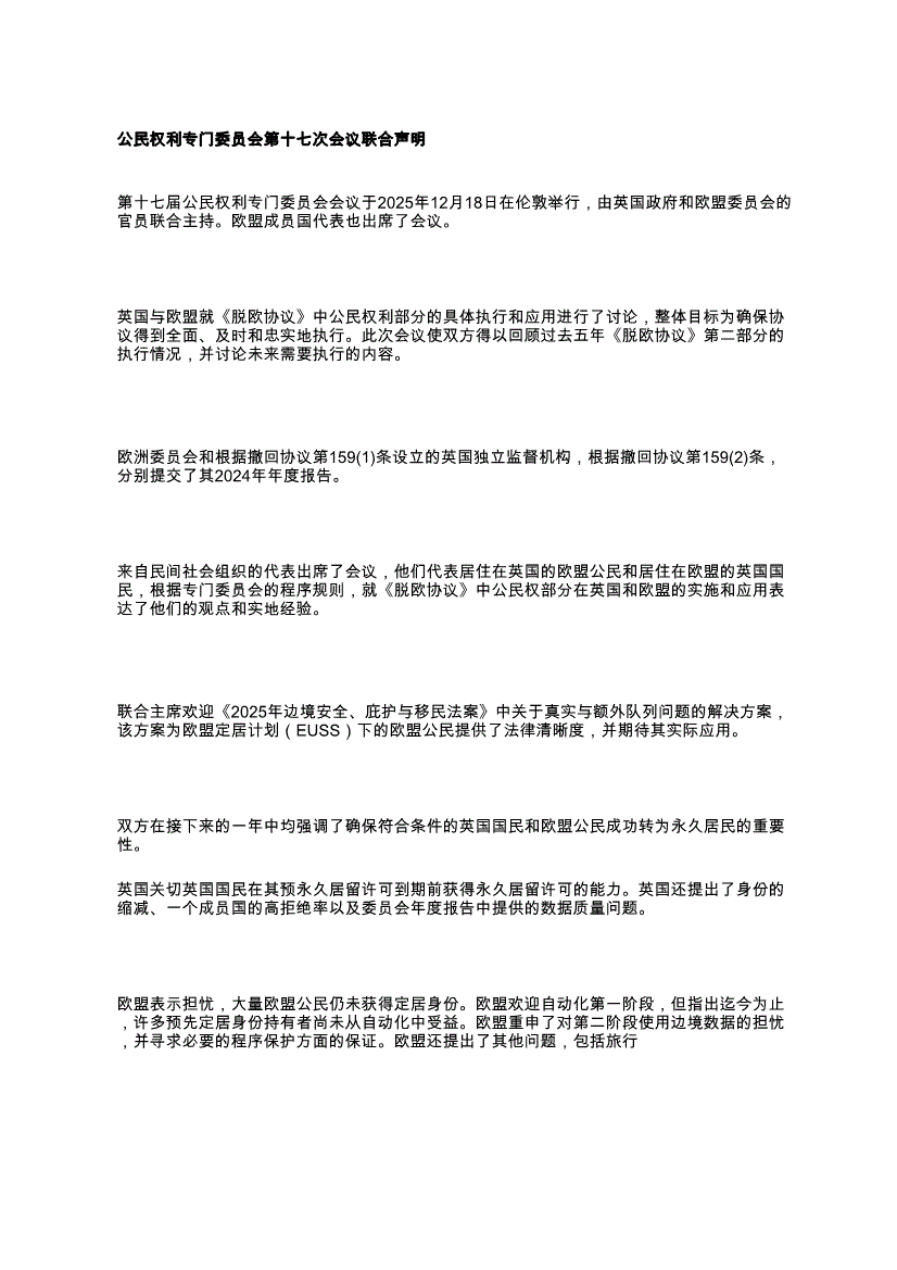 欧盟委员会-公民权利专门委员会第十七次会议后的联合声明(英译中)-251224