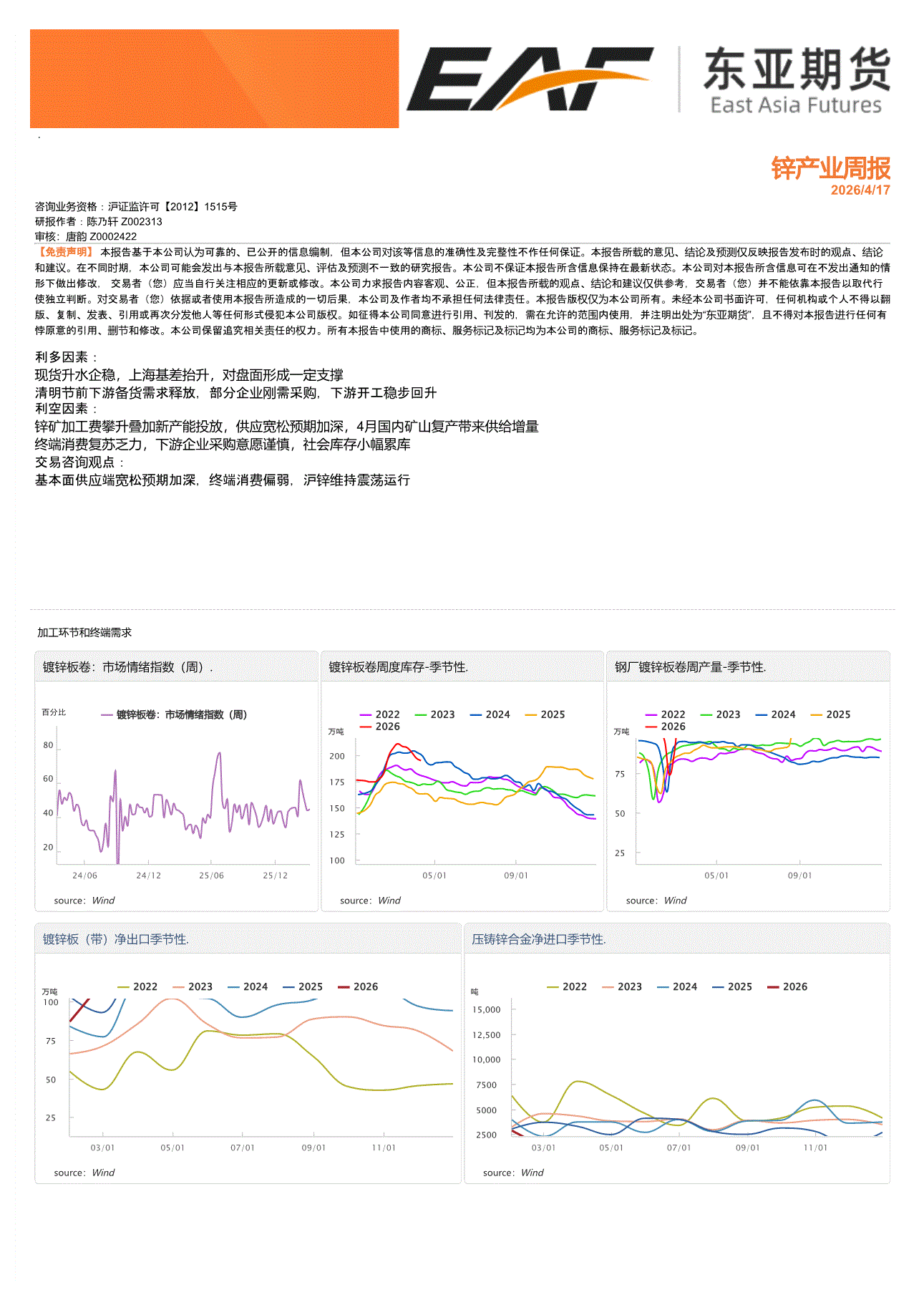 上海东亚期货-锌产业周报-260417