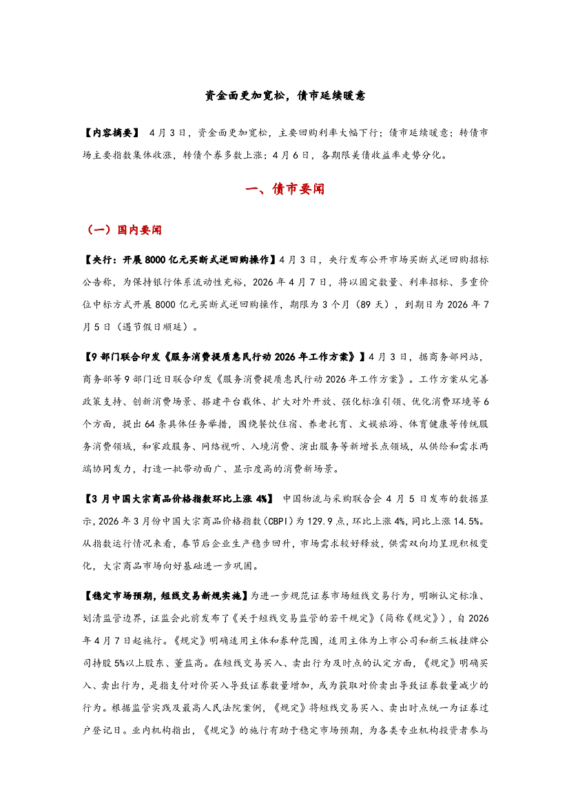 东方金诚-资金面更加宽松,债市延续暖意-260407