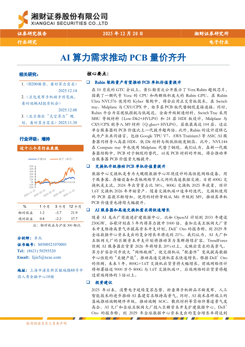 电子行业:湘财证券-电子行业:AI算力需求推动PCB量价齐升-251220